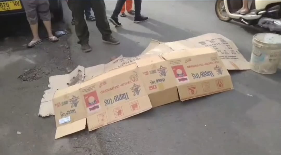 Namun kendaraan korban bersenggolan hingga korban terjatuh. Tubuh korban terpental masuk ke kolong angkot jak lingko yang datang dari arah berlawanan.
