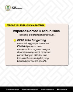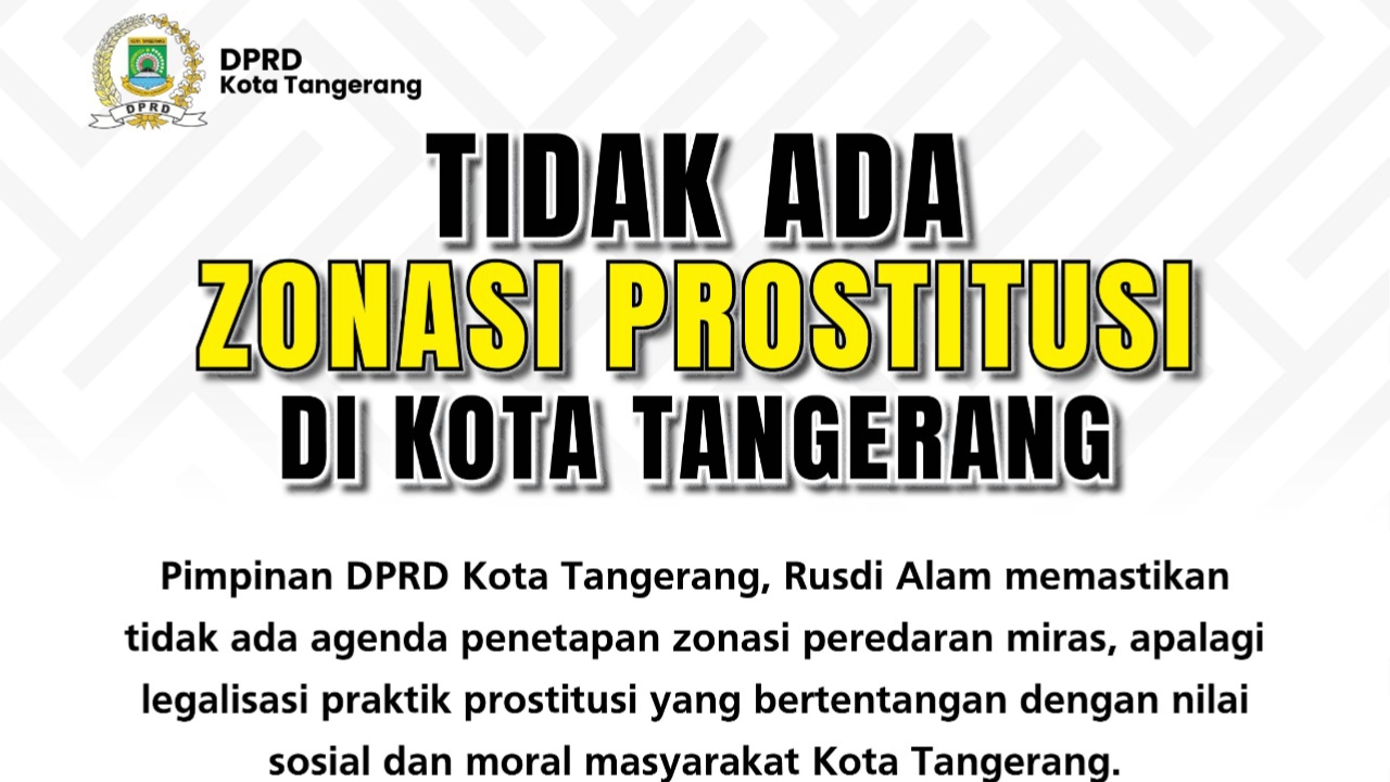 “Mengenai isu zonasi prostitusi tidak pernah menjadi bagian dari agenda prolegda 2026. DPRD bersama Pemkot Tangerang berkomitmen menjaga ketertiban sosial melalui penguatan regulasi yang relevan dengan perkembangan zaman,” terang Rusdi.