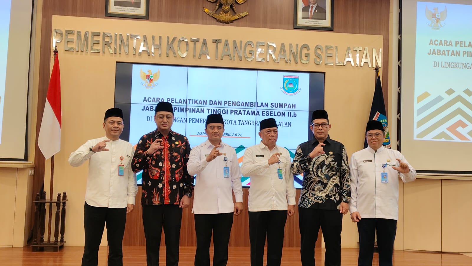 Tangerang Selatan, 17 April 2026 — Pemerintah Kota Tangerang Selatan melaksanakan serah terima jabatan sekaligus pelantikan pejabat eselon II B pada Jumat siang (17/04/2026). Kegiatan ini dipimpin langsung oleh Wali Kota Tangerang Selatan, Benyamin Davnie, didampingi Wakil Wali Kota Pilar Saga Ichsan.